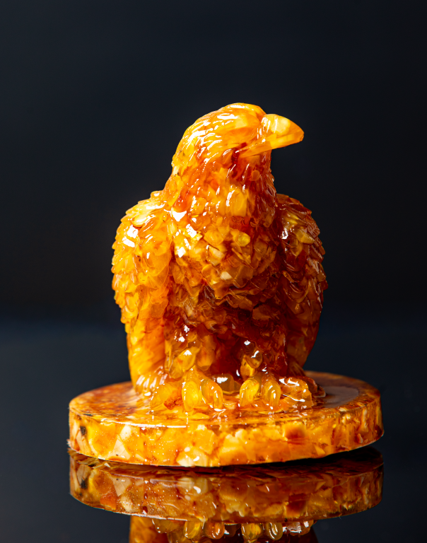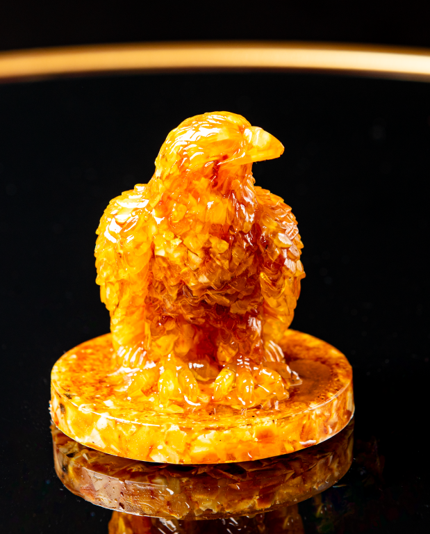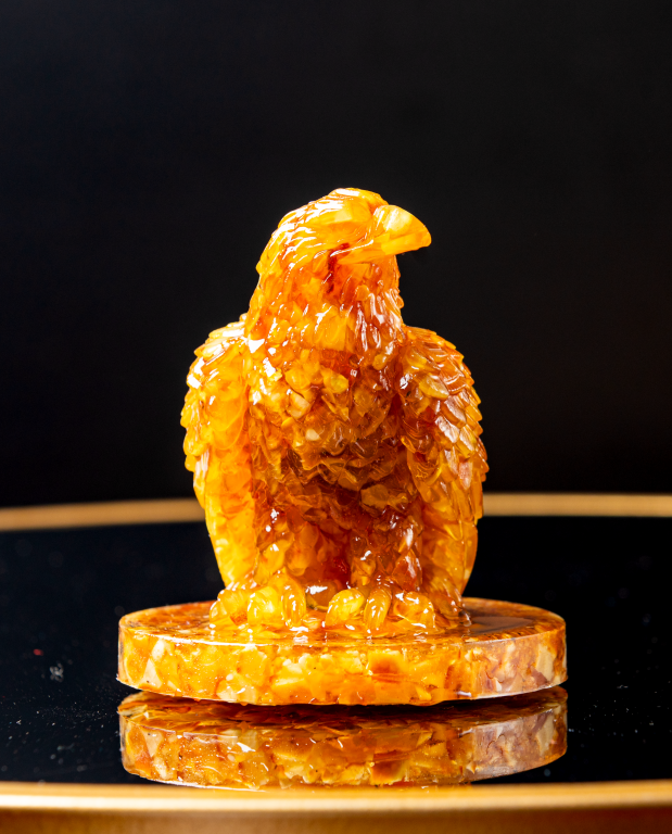 تحفة كهرمان مجسّم الصقر قطعة فنية نادرة تعكس القوة والهيبة والرمزية العميقة للصقر في الثقافة العربية. صُنعت بعناية من الكهرمان، مع تفاصيل دقيقة في النحت تُبرز جمال الشكل وقيمته الفنية