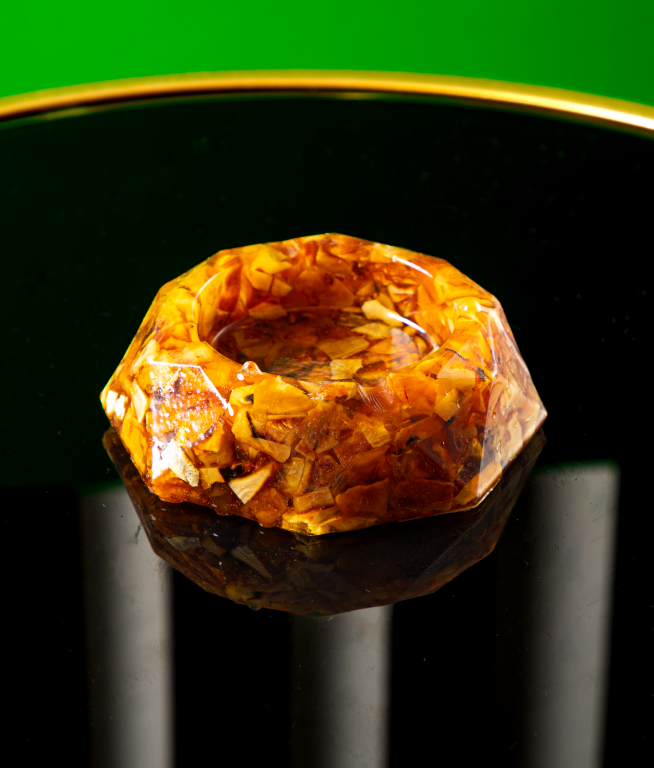 تُعد هذه القطعة تحفة كهرمان فاخرة تصلح للاقتناء أكثر من الاستخدام اليومي، لما تحمله من تميز في الشكل والقيمة