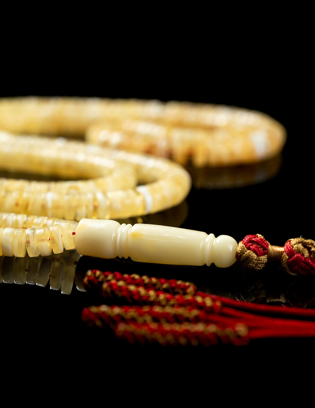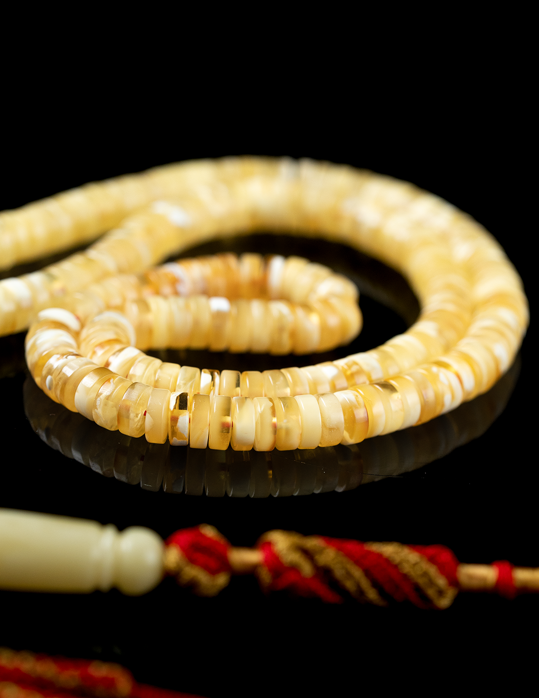 مسباح فاخر من الكهرمان الطبيعي يتميّز بتلطيخ جبس سيراميك سوبر يبرز جمال التدرجات داخل الحجر ويمنح كل خرزة طابعًا فريدًا. خامة راقية بحضور لافت ولمسة أنيقة تعكس أصالة الكهرمان الطبيعي، قطعة مميزة لعشّاق الكهرمان الفاخر والاقتناء الراقي