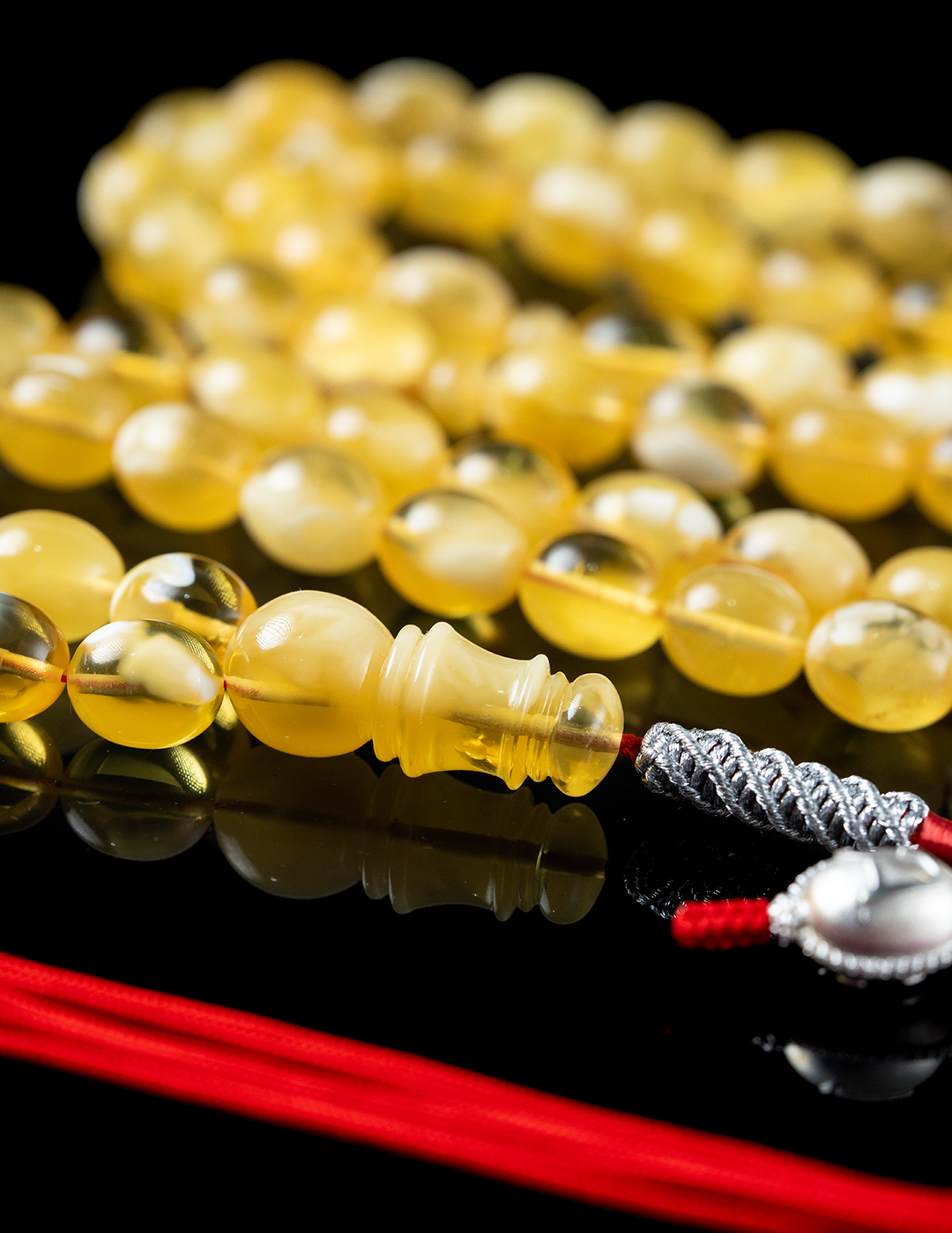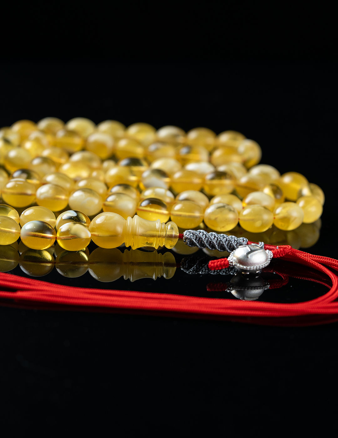 مسباح فاخر من الكهرمان الطبيعي يتميّز بتلطيخ جبس سيراميك يبرز عمق التدرجات داخل الحجر ويمنح كل خرزة طابعًا فريدًا. خامة راقية بحضور لافت ولمسة أنيقة تعكس أصالة الكهرمان الطبيعي. يحمل توقيع لوقو الخالدي كرمز للاختيار الرفيع والقطع المنتقاة بعناية، ليكون قطعة مميزة لعشّاق الكهرمان الفاخر والاقتناء الراقي
