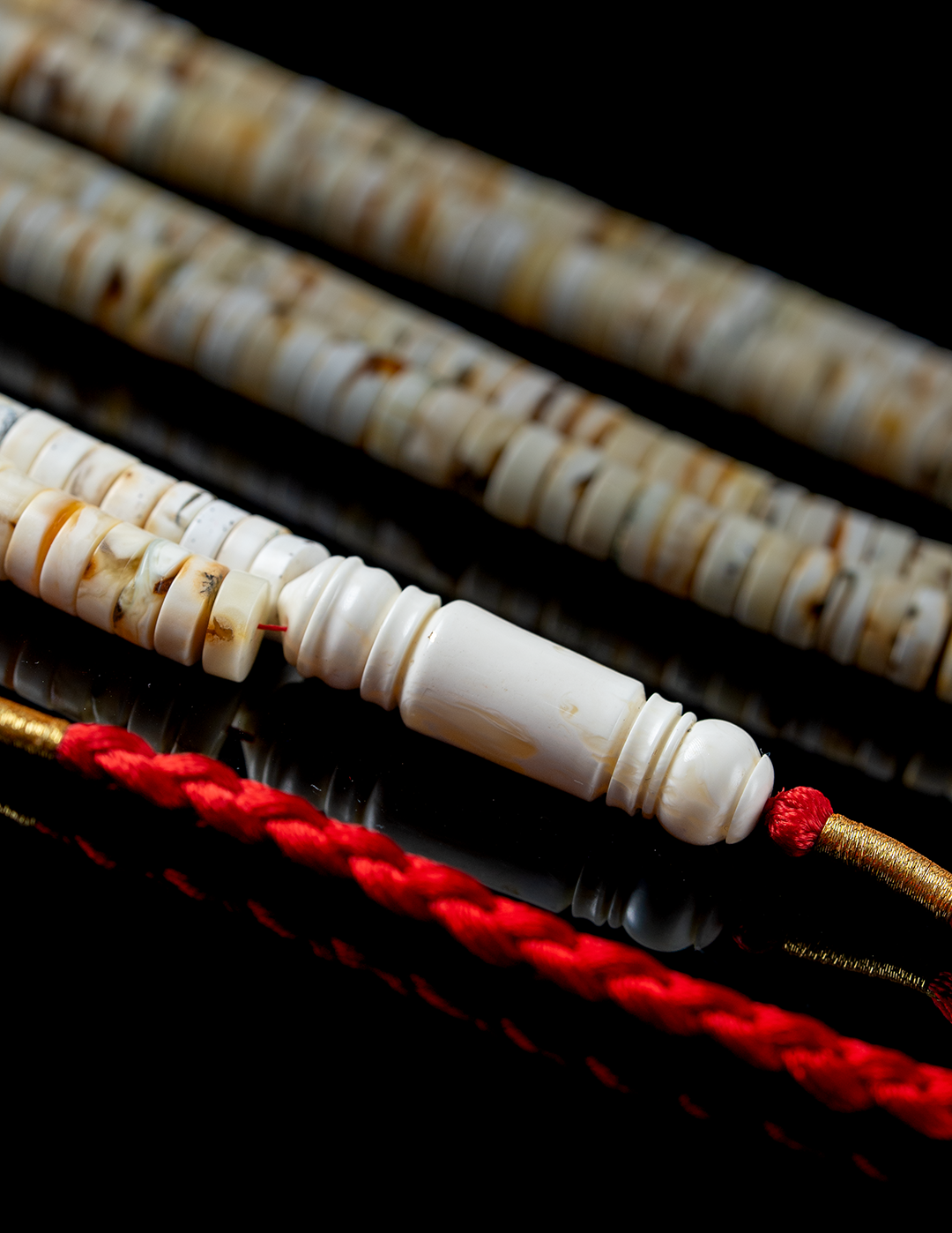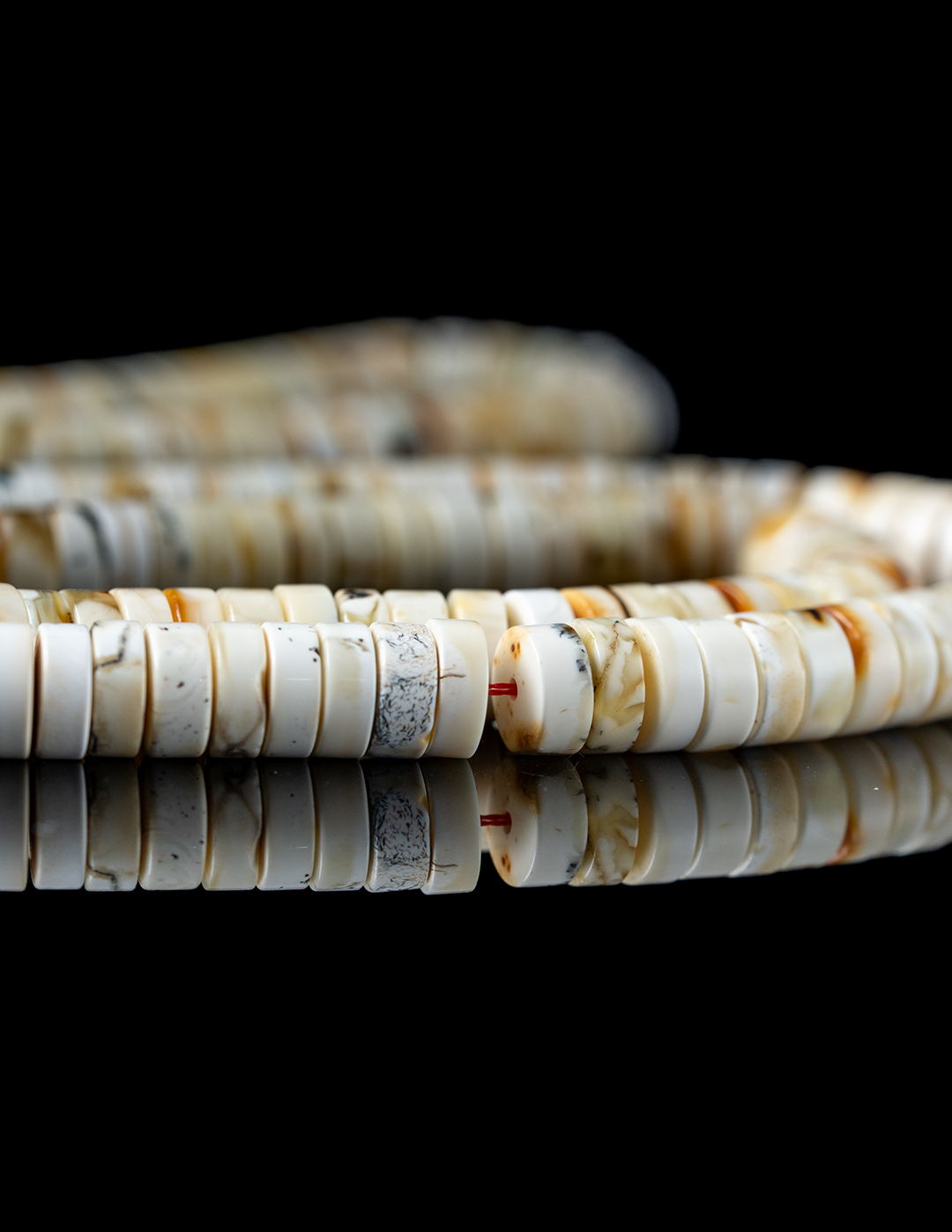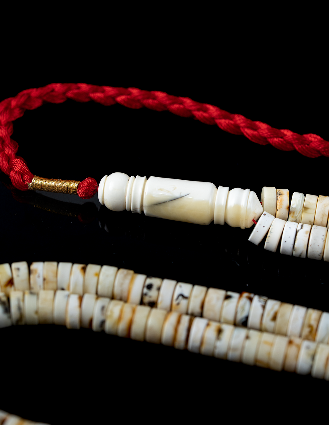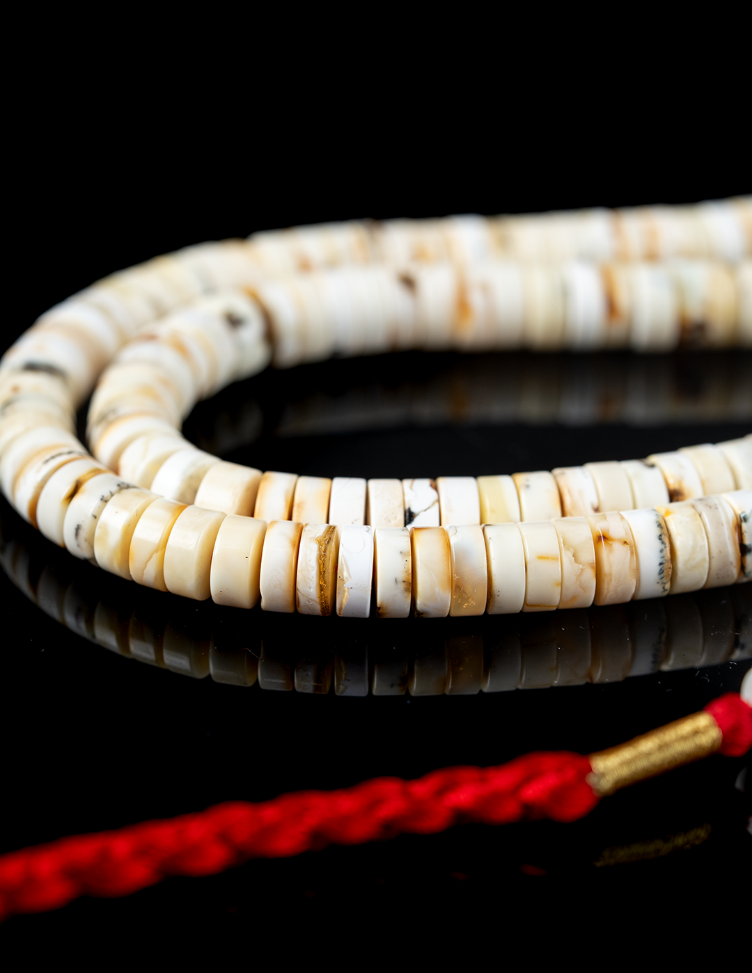 مسباح فاخر من الكهرمان الطبيعي بجبس أوريو نادر يبرز تباينًا جذابًا بين الألوان، مع قصة الهِبّة المميزة التي تضيف حضورًا قويًا وطابعًا راقيًا