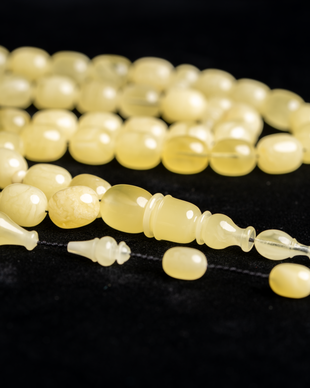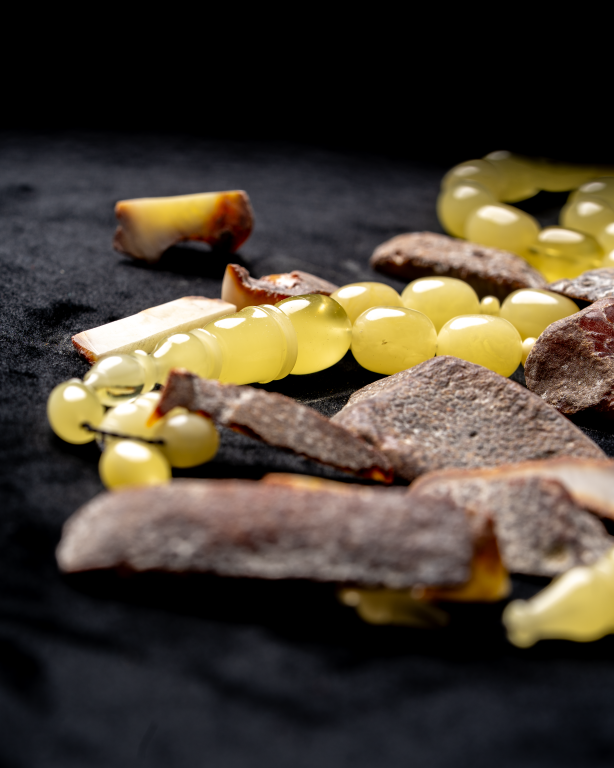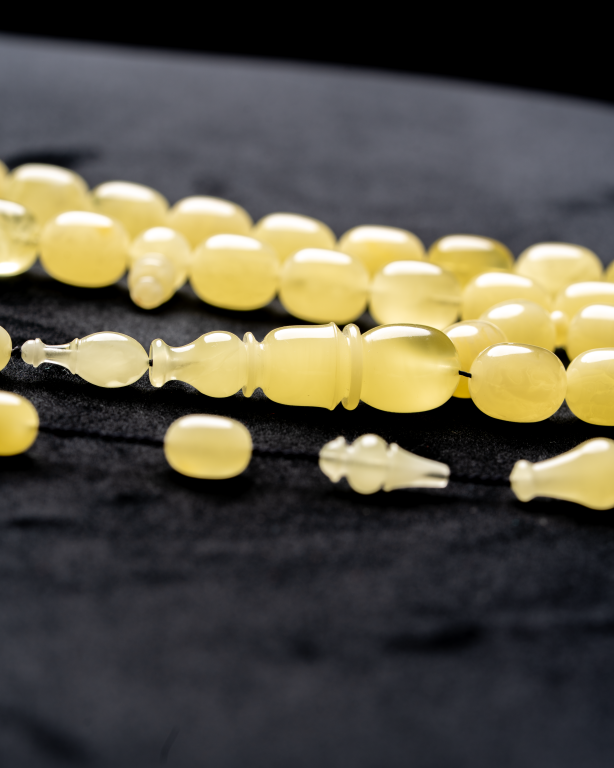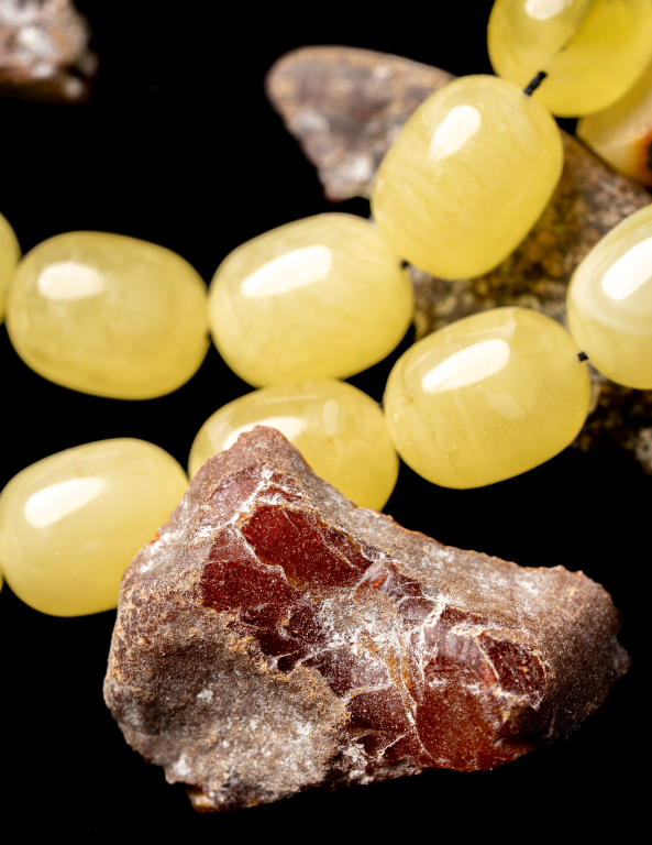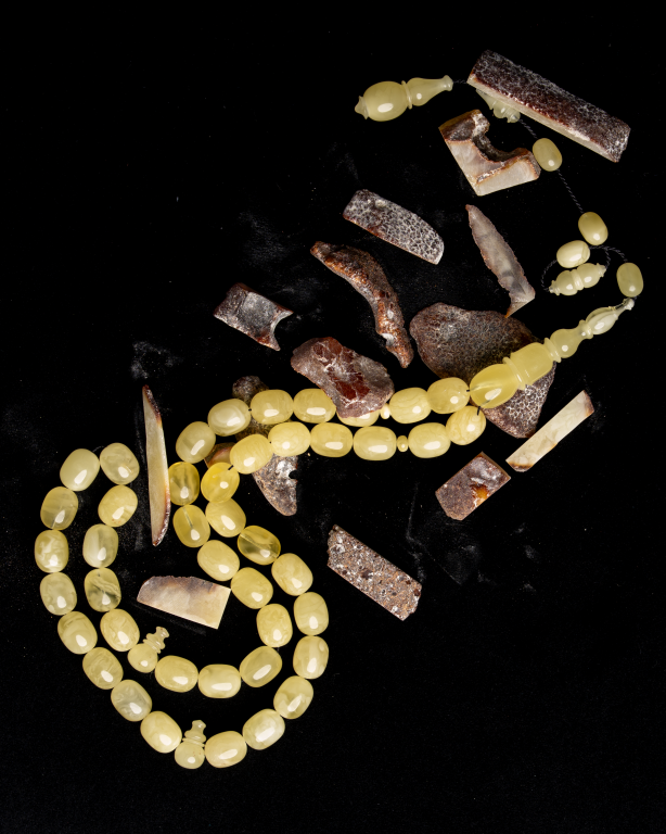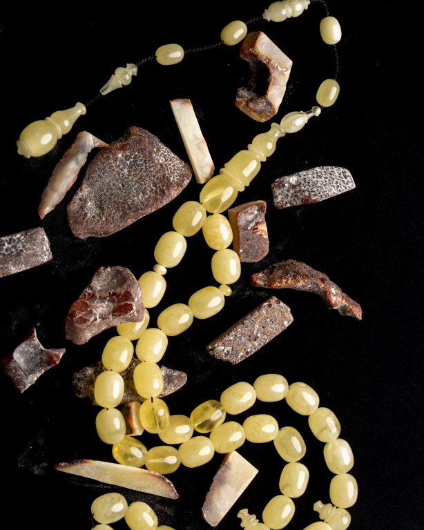 كهرمان طبيعي حجر واحد مع شاهد سبير و خرز سبير و راس كبوس و كسار