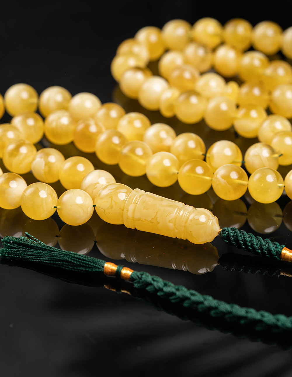 مسباح من الكهرمان الطبيعي يتميّز بنعومة عالية ولمسة مريحة في الاستخدام، بلون هادئ وحضور أنيق