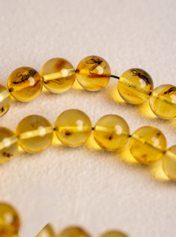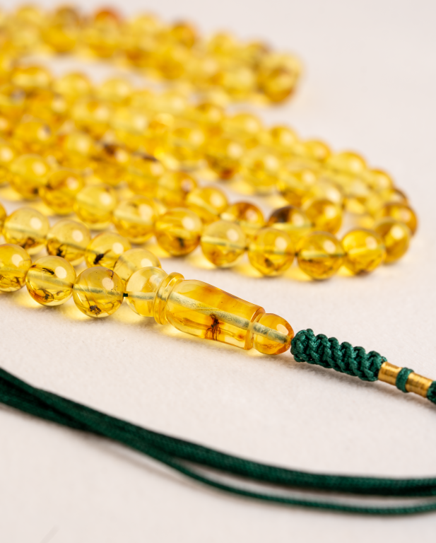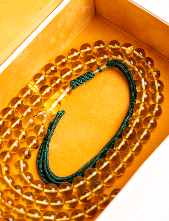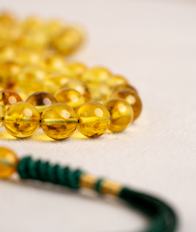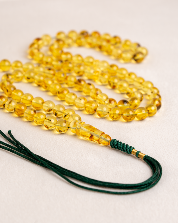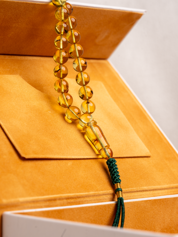 خرزه متناسق ولمعته هادئة، ويعكس جمال الكهرمان الطبيعي بأدق تفاصيله، ليكون قطعة راقية تجمع بين الاستخدام اليومي والاقتناء