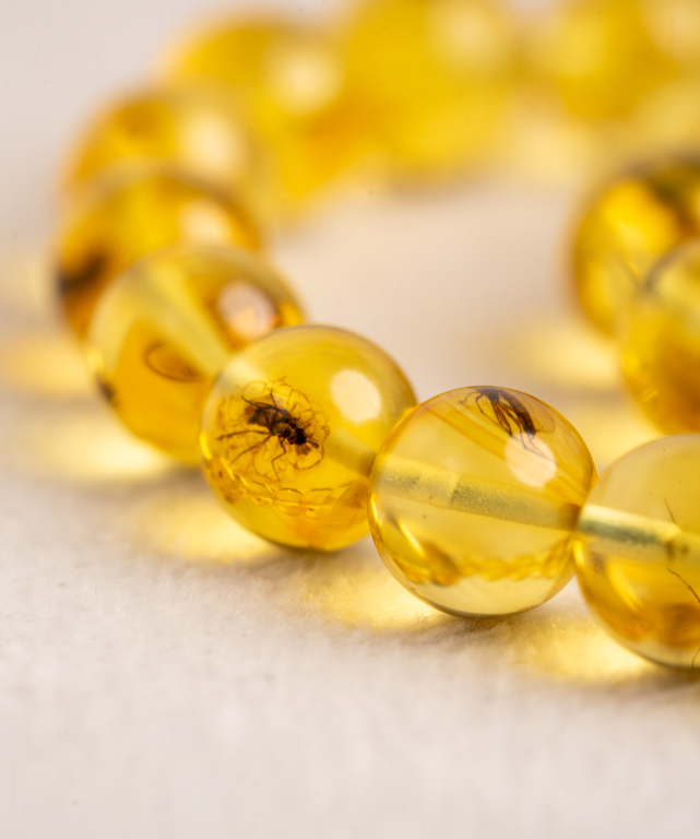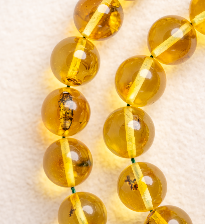 مسباح كهرمان حشري مميز يتمتع بنظافة عالية ووضوح جميل للحشرات الطبيعية داخل الحجر، ما يمنحه طابعًا نادرًا وقيمة خاصة لعشّاق الكهرمان الحقيقي