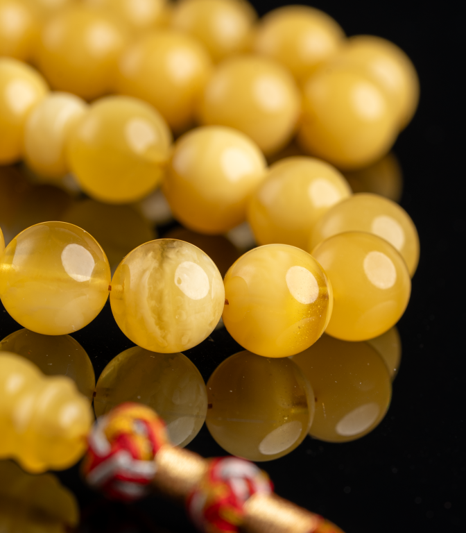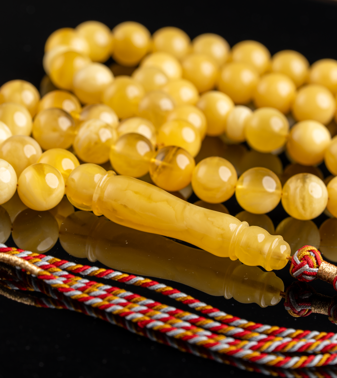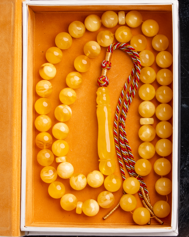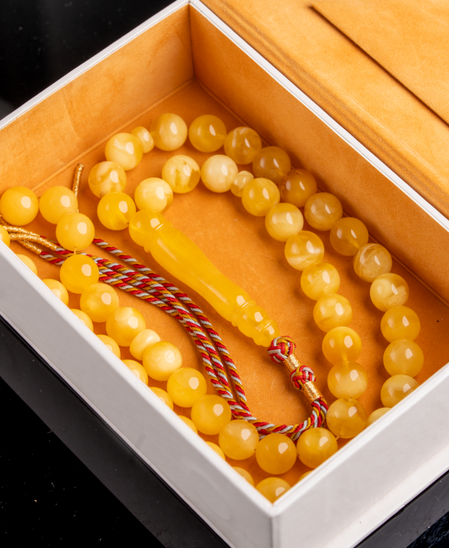 مسباح كهرمان طبيعي كلينجرادي فاخر قصة دائرية متقنة، يتميز بلون مبرقع غني يجمع بين العمق والصفاء، ويُظهر جمال الحجر الطبيعي ولمعانه مع الاستخدام والإضاءة. خرز متناسق وملمس ناعم يعكس جودة الاختيار ودقة الصنع، ليمنح المسباح حضورًا راقيًا يليق بالذوق الرفيع.