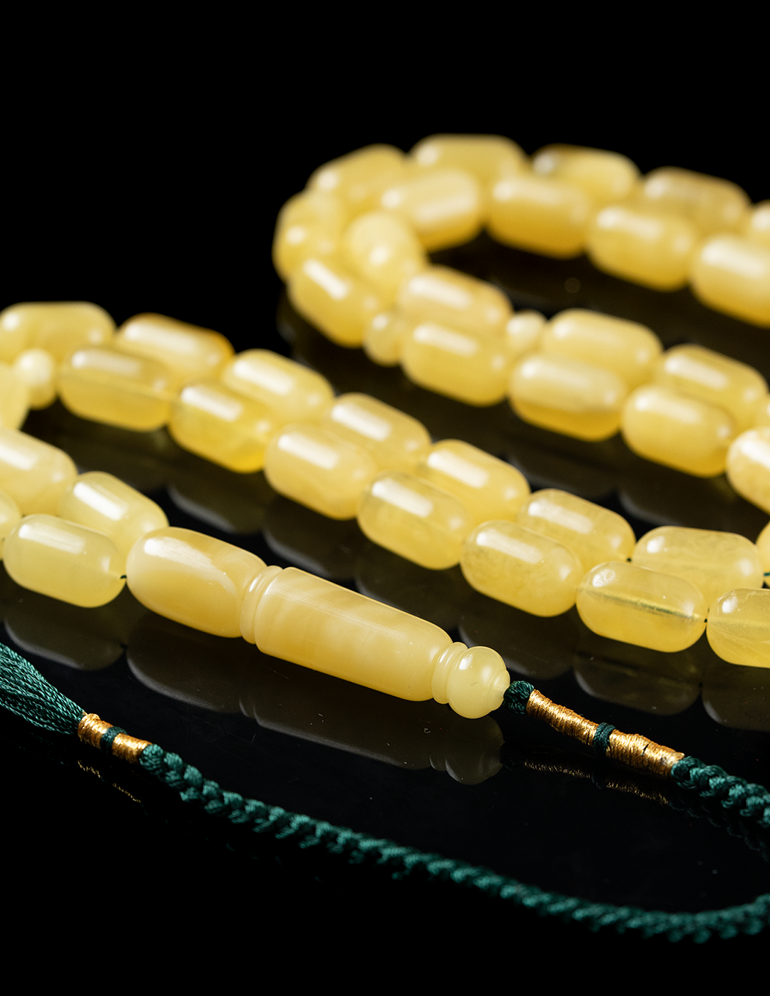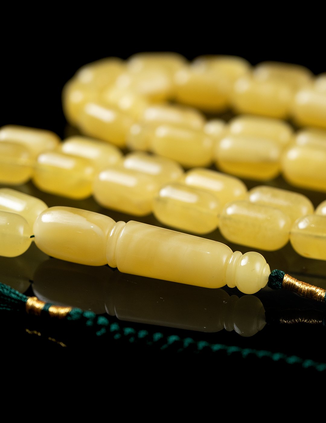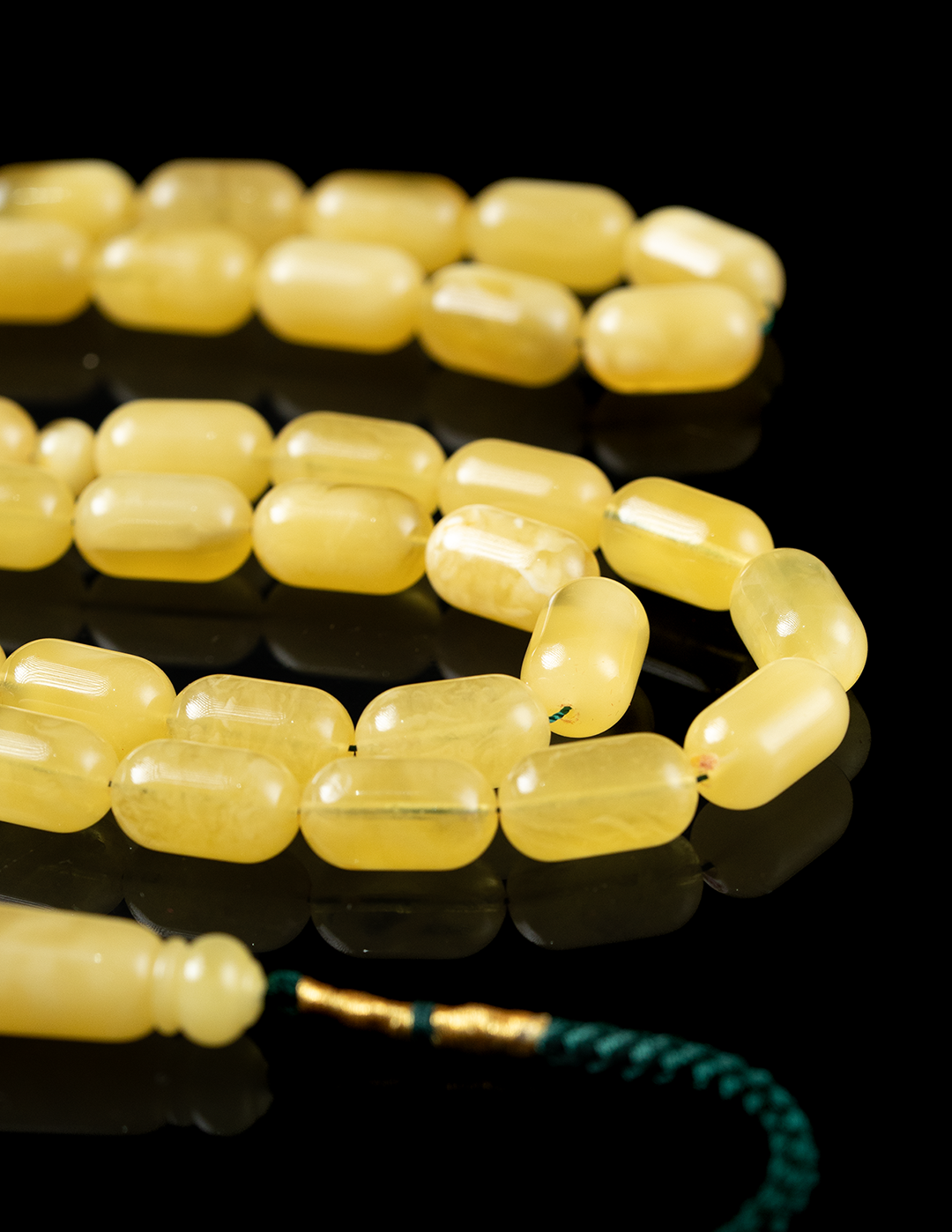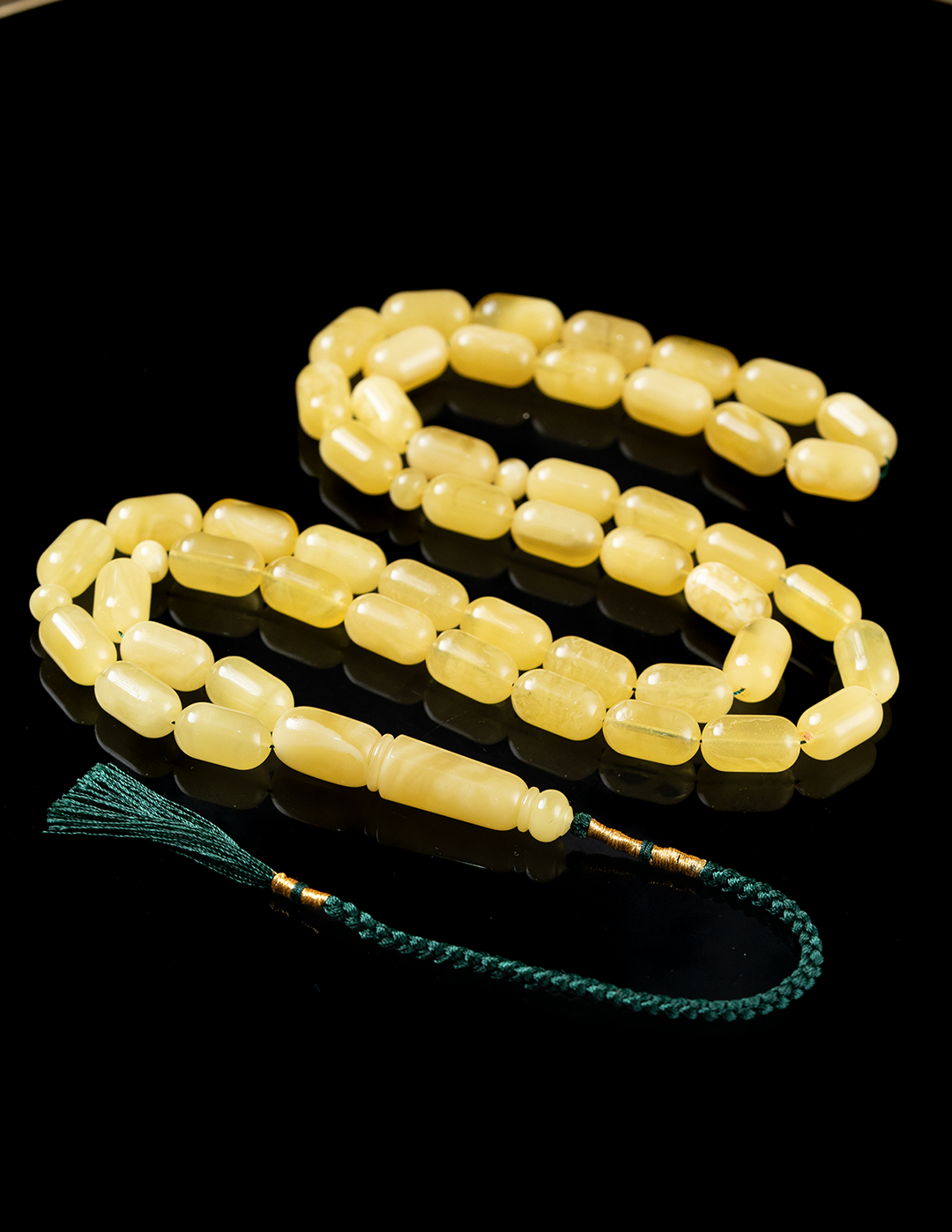 قطعة فاخرة من الكهرمان الطبيعي المبرقع تتجلّى فيها تدرجات الحجر وتفاصيله الفريدة في كل خرزة. يكتمل جمال المسباح بشاهد مميز ووزن مثالي يمنحه حضورًا راقيًا وتوازنًا رائعًا في اليد. مسباح يجمع بين أصالة الخامة وفخامة الشكل، ليكون اختيارًا مميزًا لعشّاق الكهرمان الفاخر والاقتناء الراقي