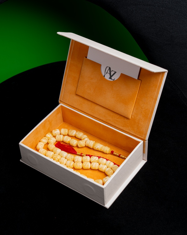 يتميّز هذا المسباح بـ تشخيط تايقر واضح وقصّة متناسقة تضيف له طابعًا فخمًا ولافتًا، مع لمسة فنية تعكس خبرة طويلة واهتمامًا بأدق التفاصيل، ما يجعله قطعة مميزة للاقتناء لهواة المسابيح والباحثين عن التفرّد.