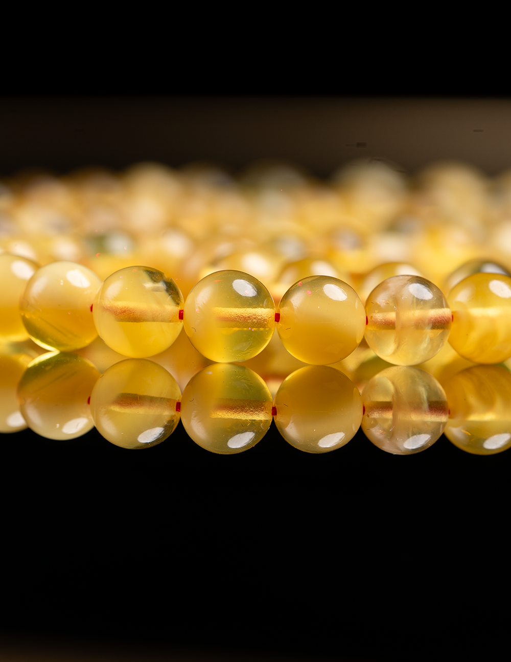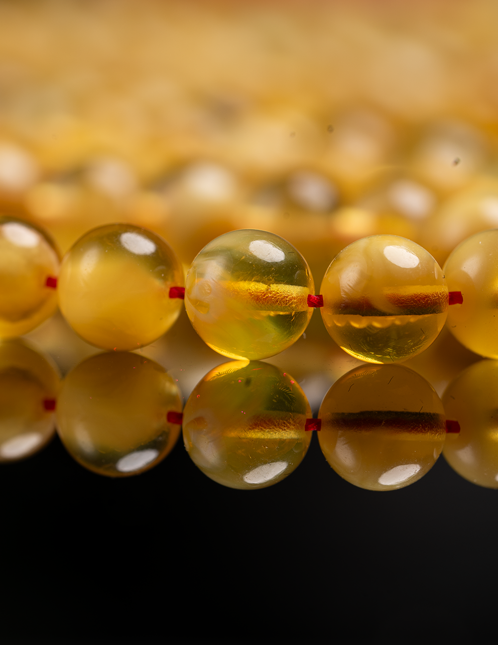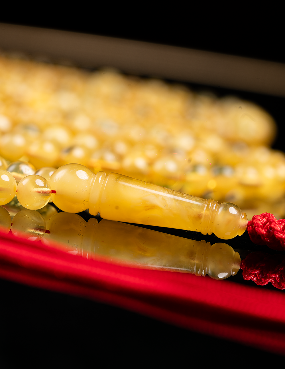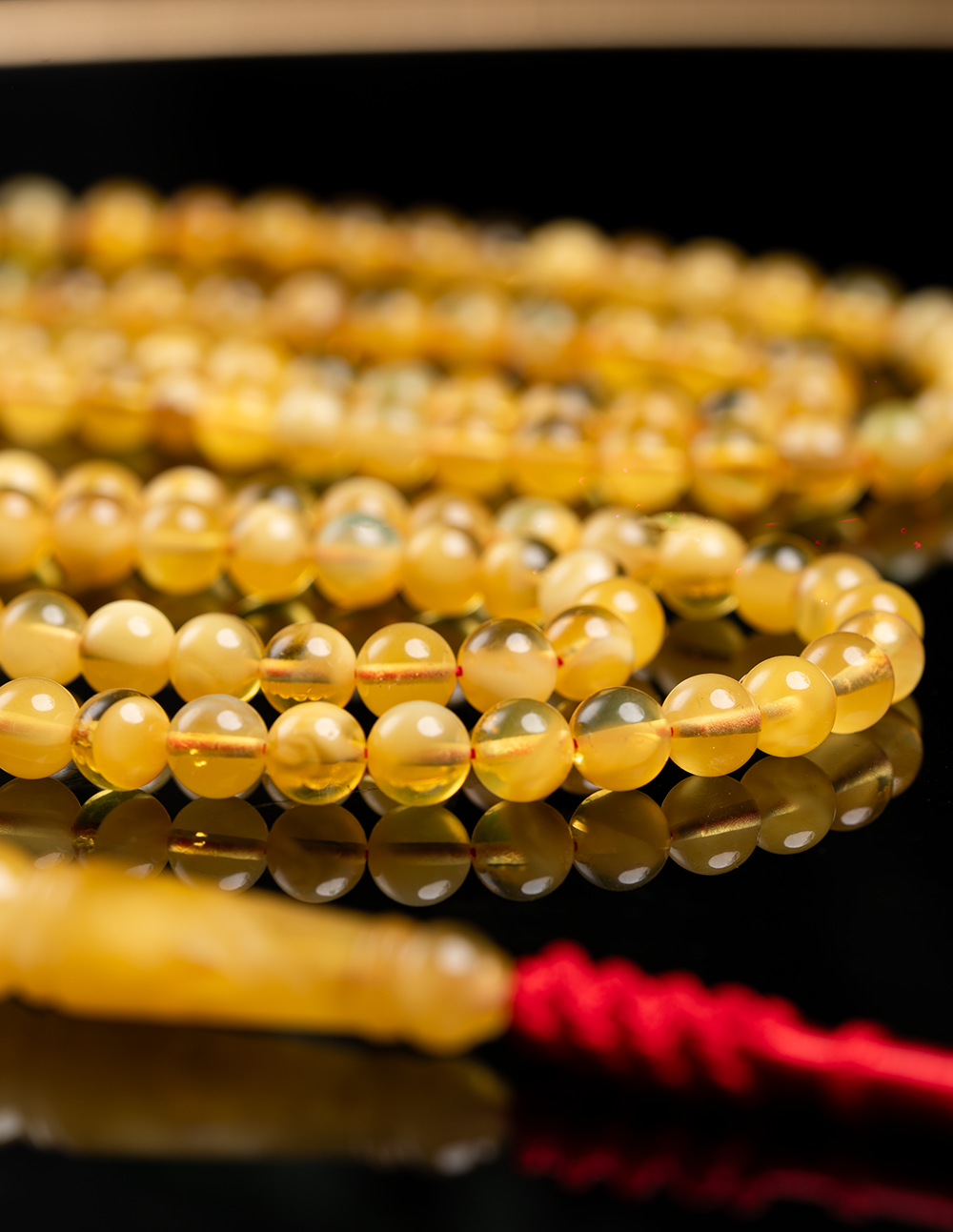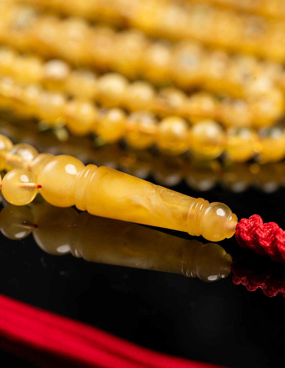 مسباح من الكهرمان الطبيعي القديم يتميز بلونه الدافئ ولمعته الهادئة التي تعكس عمر الحجر وأصالته