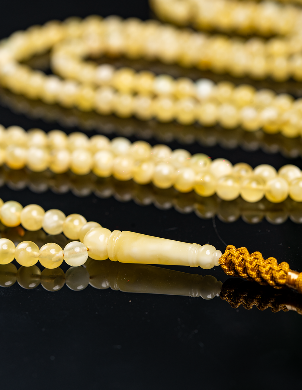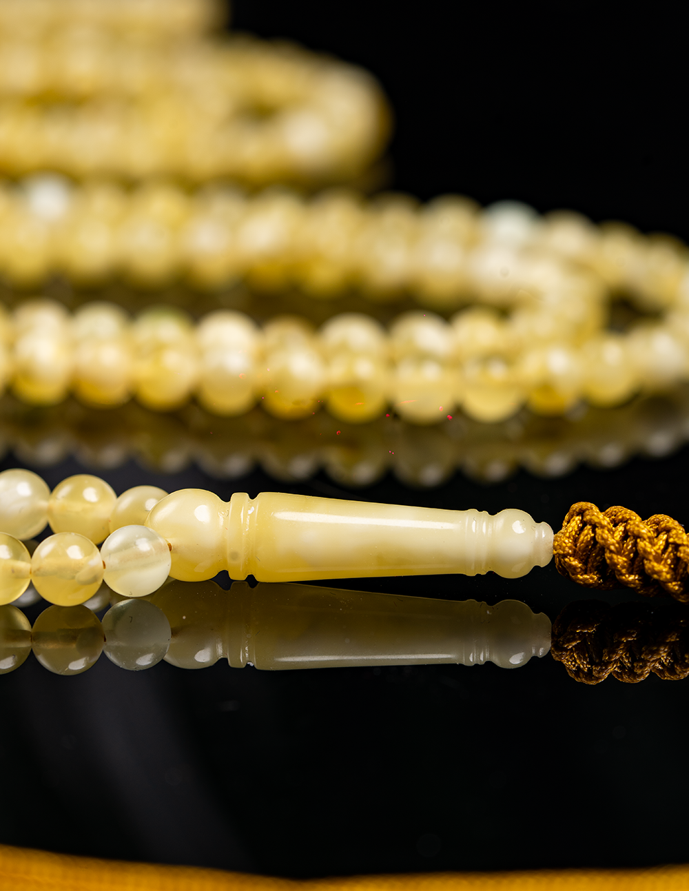 مسباح من الكهرمان الطبيعي يتميّز بنعومة عالية ولمسة مريحة في الاستخدام، بلون هادئ وحضور أنيق