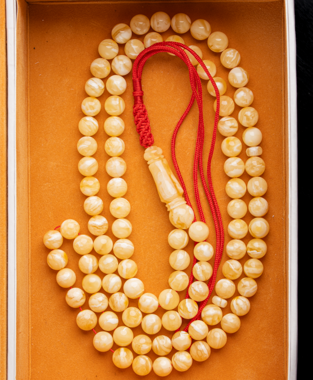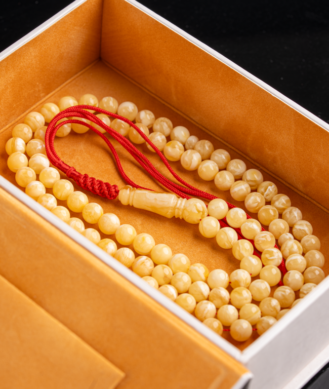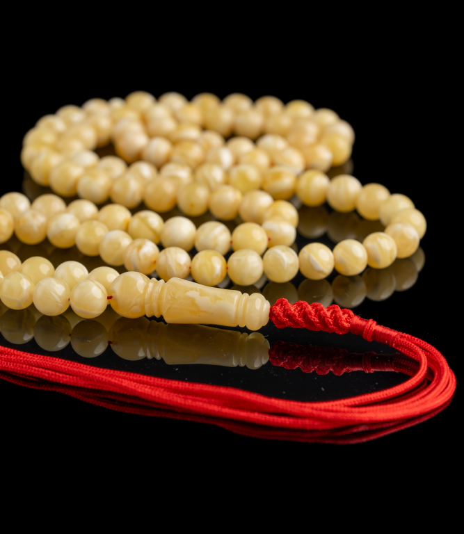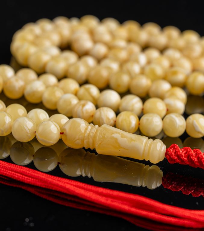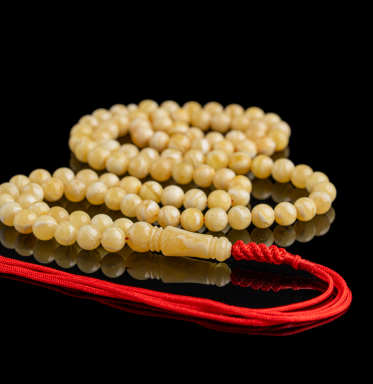 مسباح من الكهرمان الطبيعي يتميّز بنعومة عالية ولمسة مريحة في الاستخدام، بلون هادئ وحضور أنيق