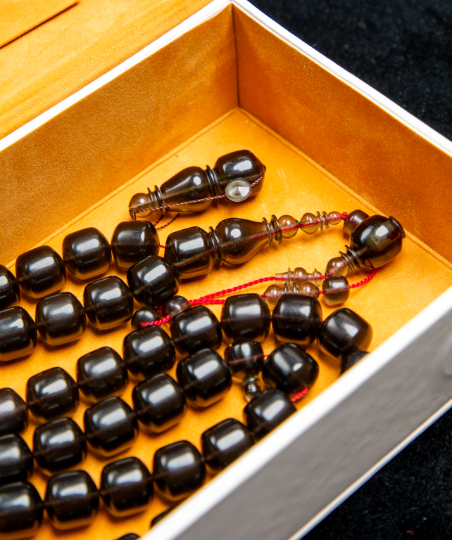 مسباح بلون غامق راقي وغير متكرر، يعطي حضور قوي وفخم، ومع القصّة الصندوقيّة يطلع بشكل مرتب وأنيق
