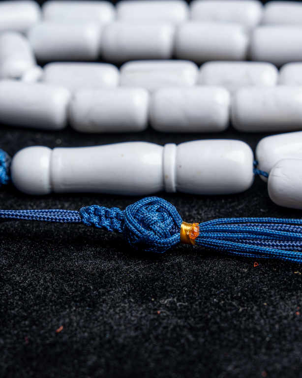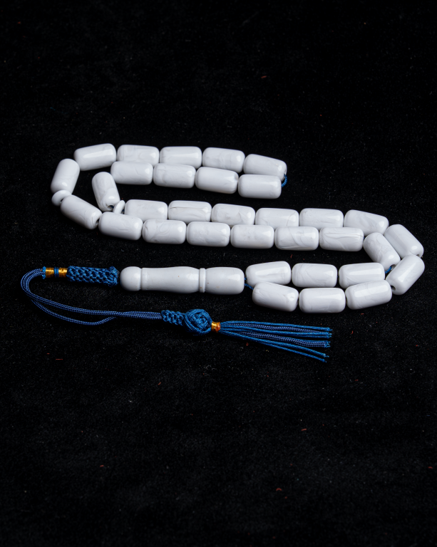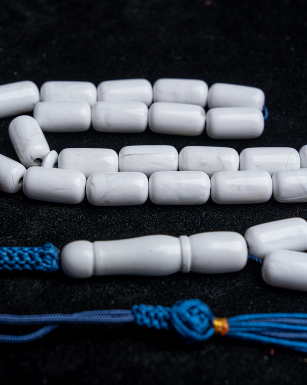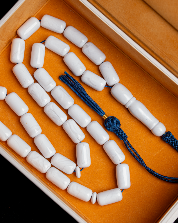 مسباح يتميّز بلون أبيض ناعم وقصّة أسطوانية أنيقة تعكس هدوء اللون ورقي الشكل
